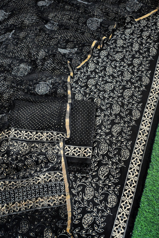 Beautiful Khadi ( खड़ी) Hand Block Printed Cotton unstitched suit fabric with Kota Doria Dupatta