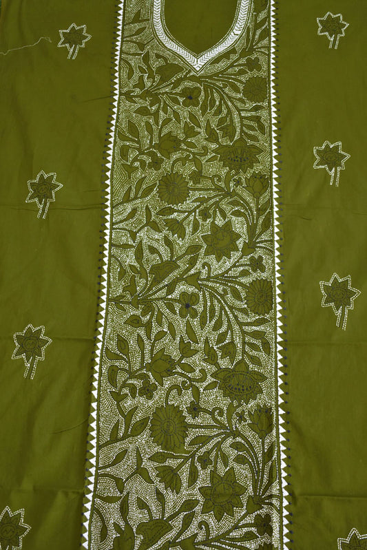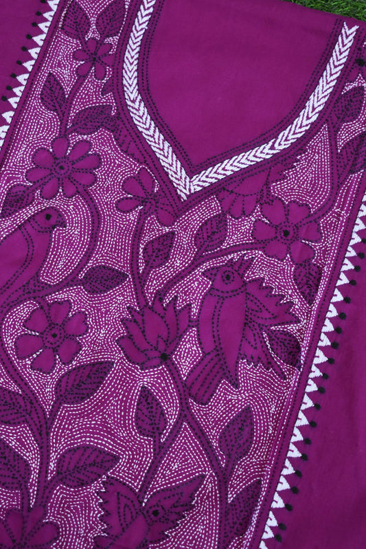 Hand Embroidered Kantha work cotton fabric - (Length 2.8 mtrs )