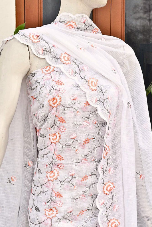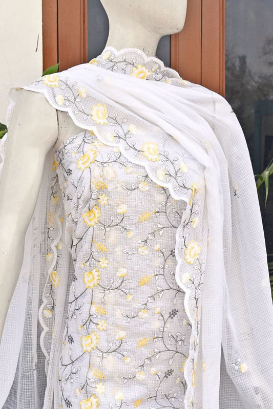Elegant , Soft & Light Kota Cotton Kurta & Dupatta with embroidery & scallops