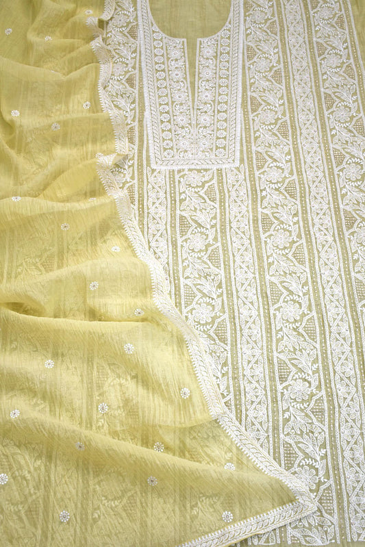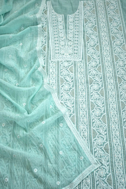 Gorgeous Mul Chanderi Kurta fabric & Dupatta set with embroidery