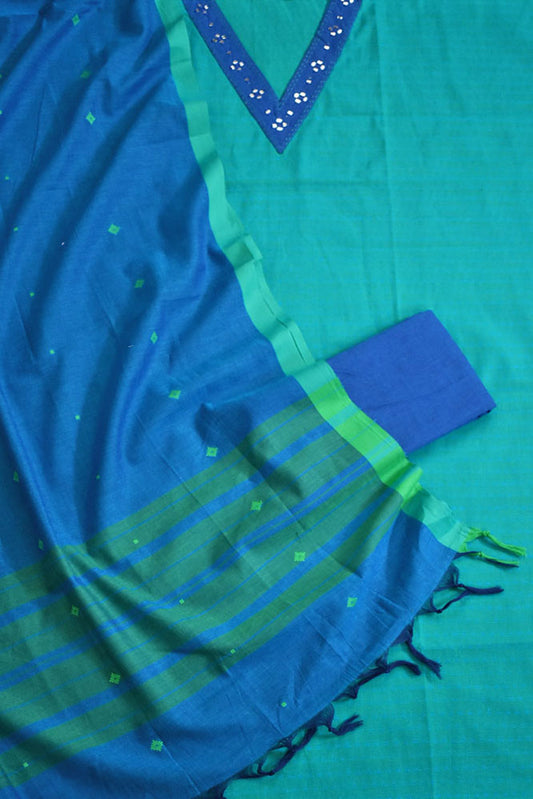 Handwoven Cotton suit with Hand Embroidery & Mirror work