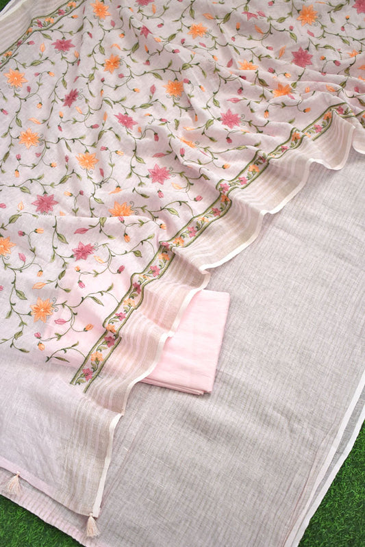 Beautiful Pure Linen suit with intricate embroidery on the kurta & dupatta and cotton silk bottom