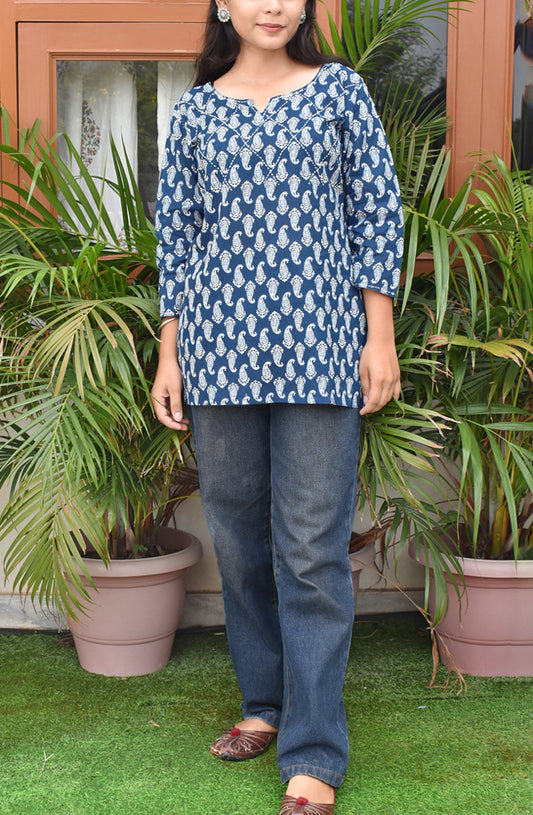 Beautiful Cotton Kurta with Ajrakh patch Kutch mirror work size - 40-46