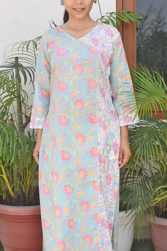 Beautiful Nyra Cut Cotton Kurta & bottom with gota and embroidery work with long side slits- Size 38,40, 42