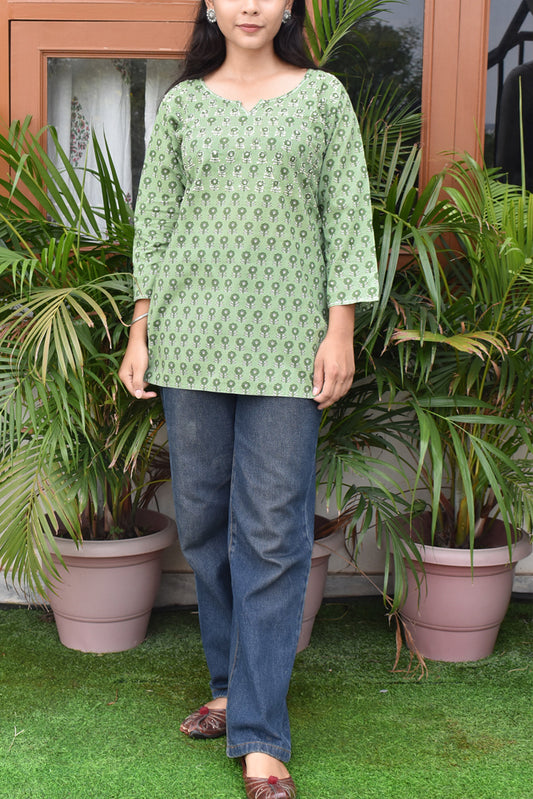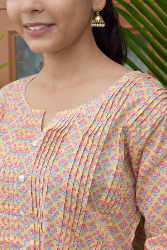 Elegant Soft Cotton Short top / Kurta with pleats Size - 36, 38, 40, 42