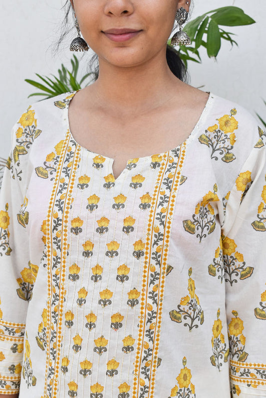 Beautiful Cotton Kurta with Tagai & Aari work & Embroidered Sequins Size - 38, 40, 42, 44