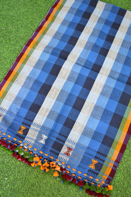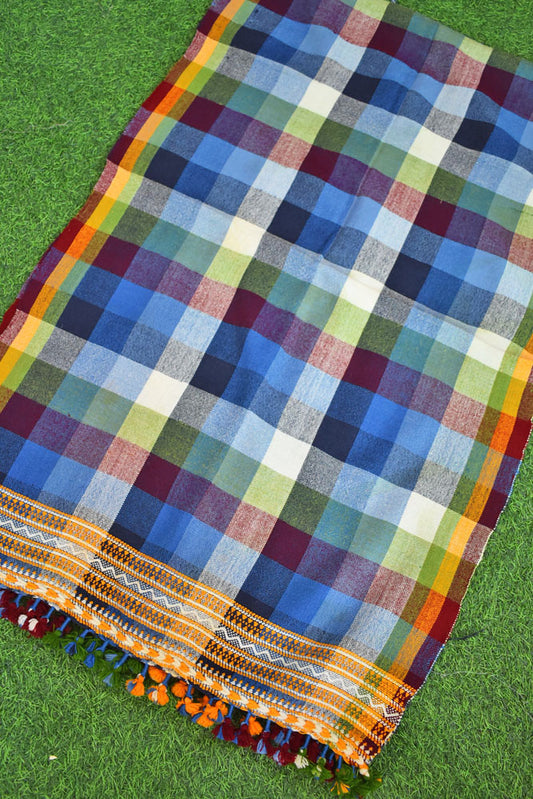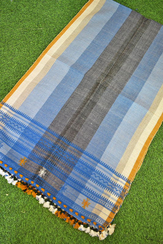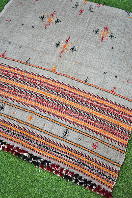 Unique, Warm Handwoven Bhujodi Handwoven Pure Wool shawl with tassels - Unisex Shawls