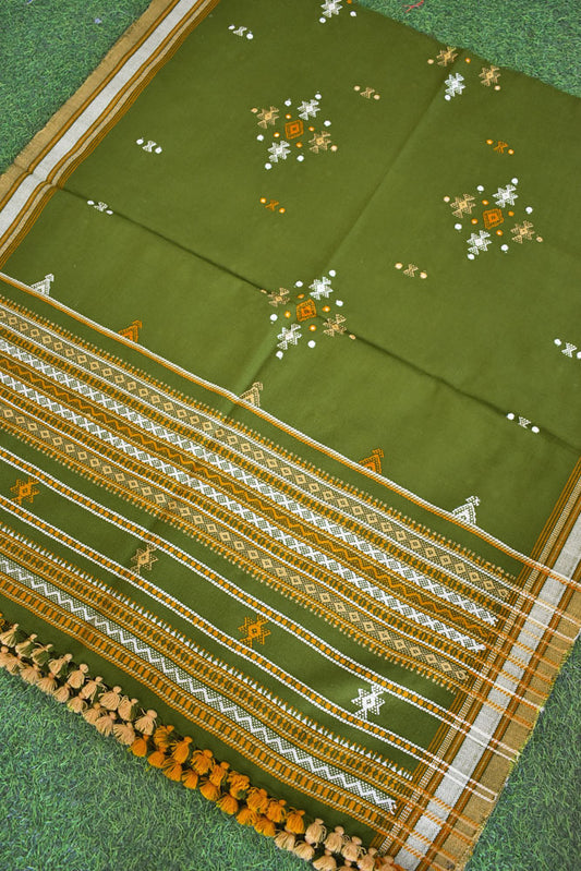 Handwoven Bhujodi Stole / Shawl with Tie Dye Bandhani & Mirror work