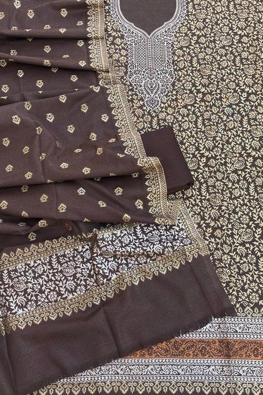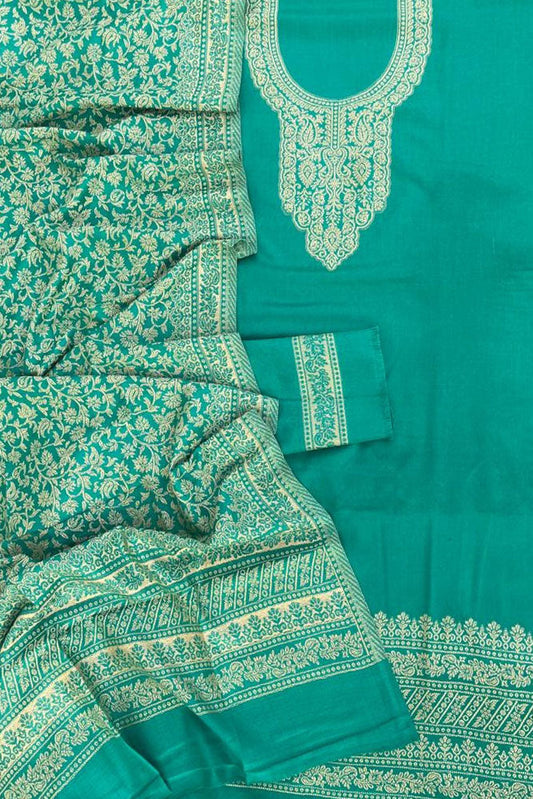Beautiful Woolen Suit fabric & Stole with All over Copper, Silver & Gold Zari weaving