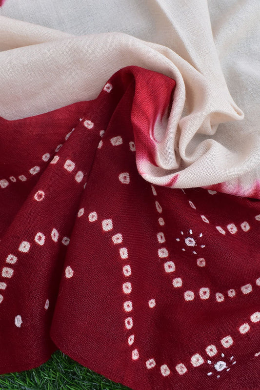 Handwoven Bhujodi Stole / Shawl with Tie Dye Bandhani & Mirror work