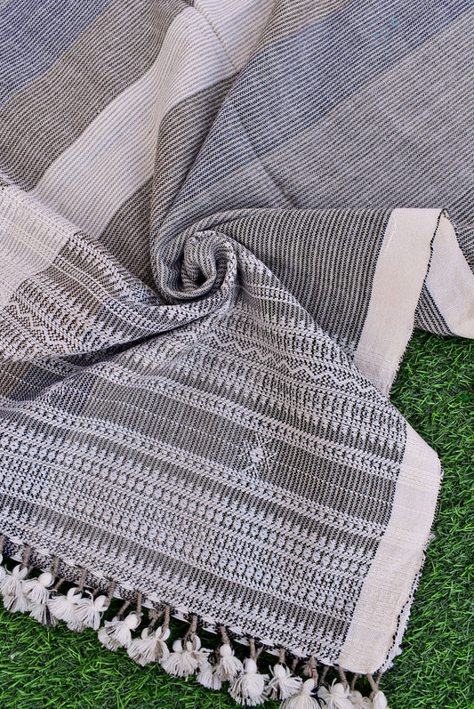 Unique, Warm Handwoven Bhujodi Handwoven Pure Wool shawl with tassels - Unisex Shawls