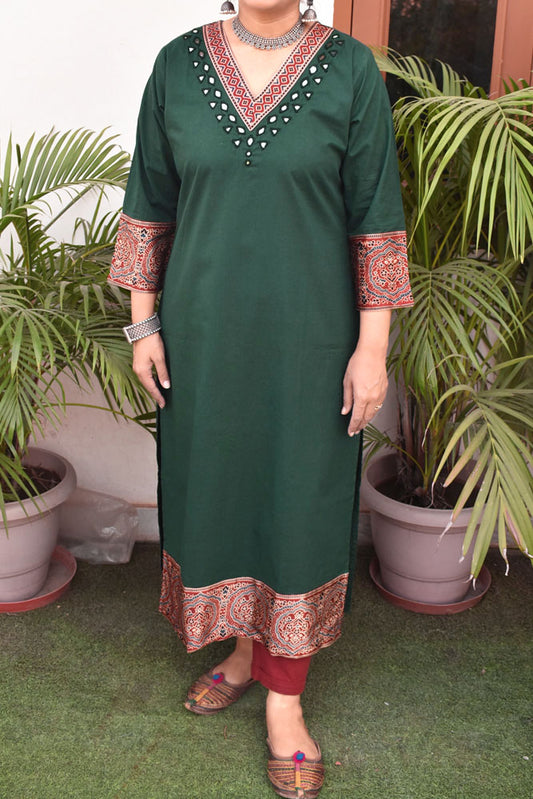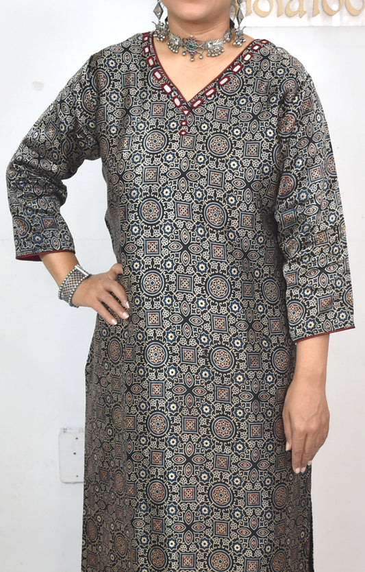 Beautiful Cotton Kurta with Ajrakh patch Kutch mirror work size - 40-46