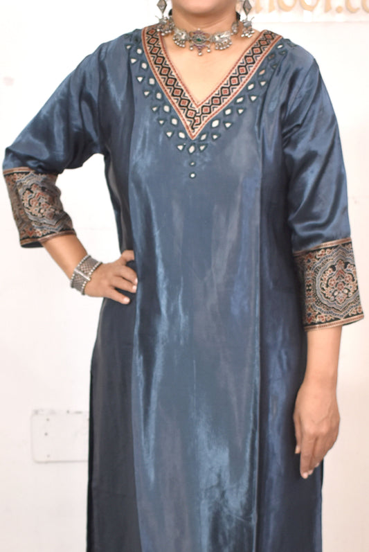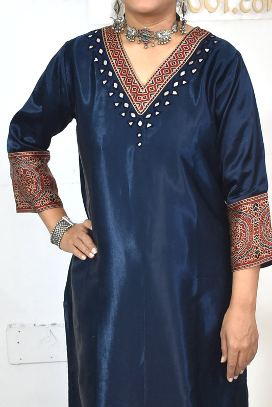 Beautiful Mashru Silk Kurta with Ajrakh patch Kutch mirror work size - 40-46