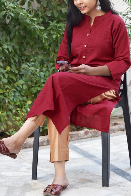 Beautiful Cotton Kurta with one side pocket size - 38 to 48 - dark maroon