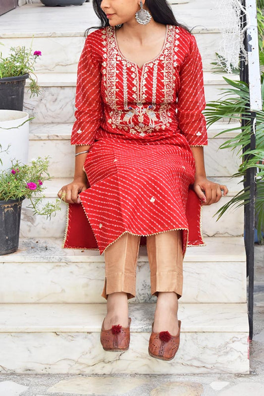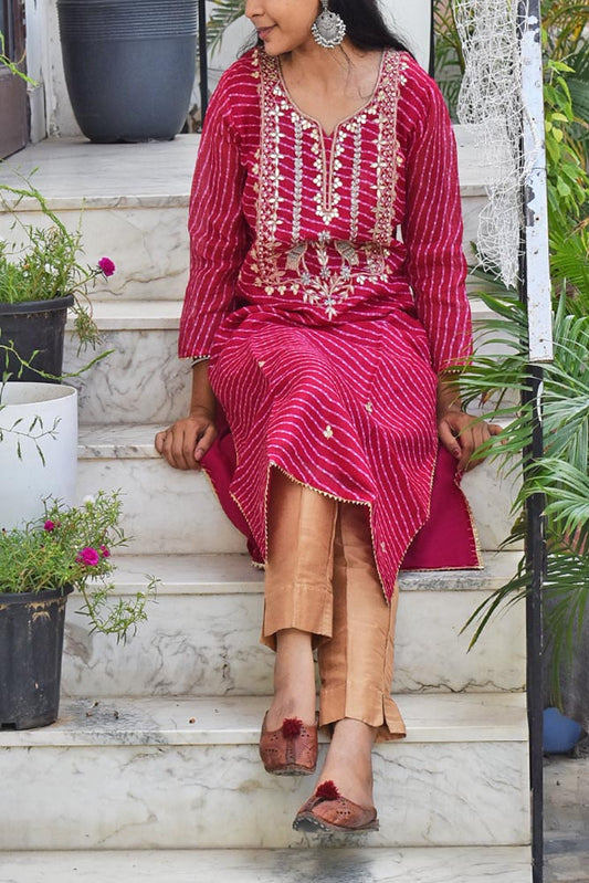Block Printed Cotton Kurta with gota work - size 38