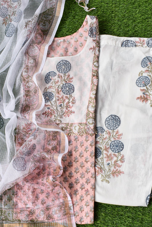 Hand Block Printed Long kalidaar Cotton Kurta & Bottom Set - size 38, 40