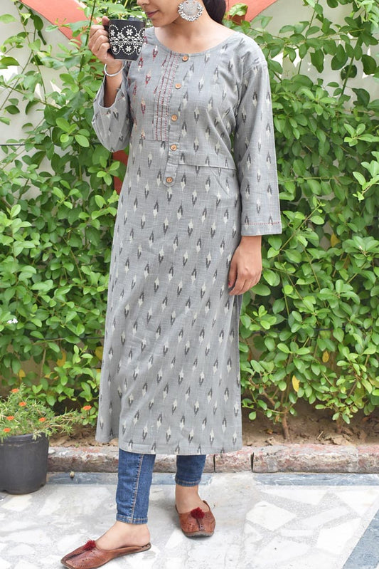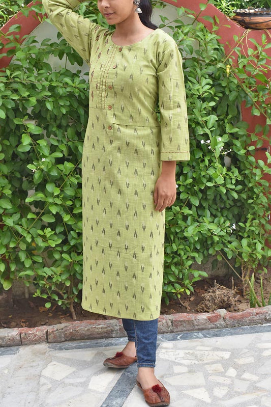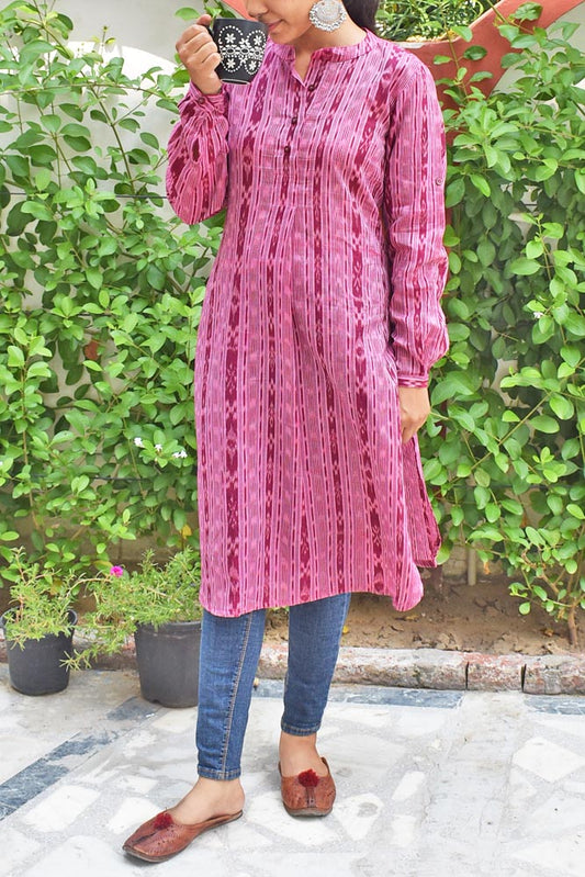 Handloom Cotton Kurta With Ikkat Print - size 38 & 42