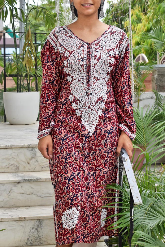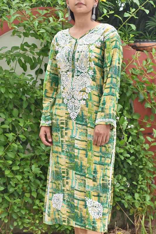 Elegant Voile Cotton Long Kurta with Chikankari Size - 42