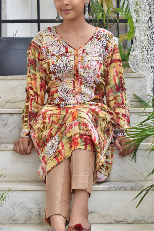 Elegant Cotton Kurta With Ikkat Print - size 38 & 42