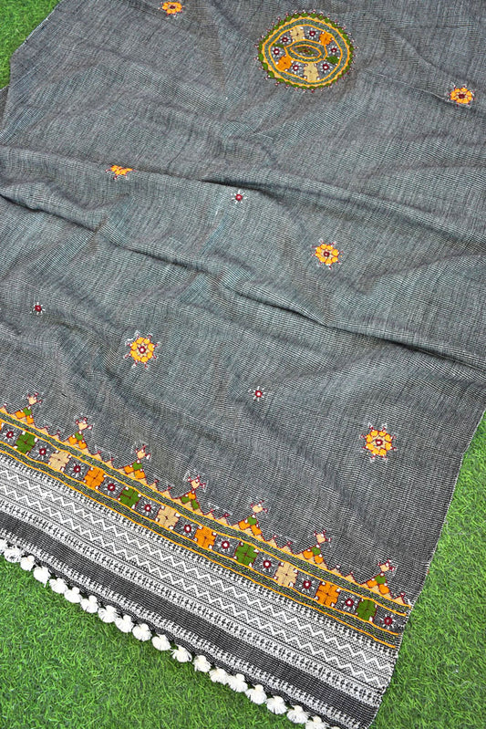 Handwoven Bhujodi Mirror Work Wool Stole / Shawl