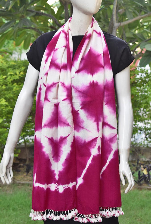 Hand woven Kutch Merino Wool Stole with Shibori Dye & Tassels