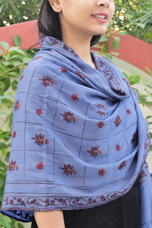 Intricate Kashmiri Sozni Hand Embroidery & Cutwork Work Woolen StoleStole