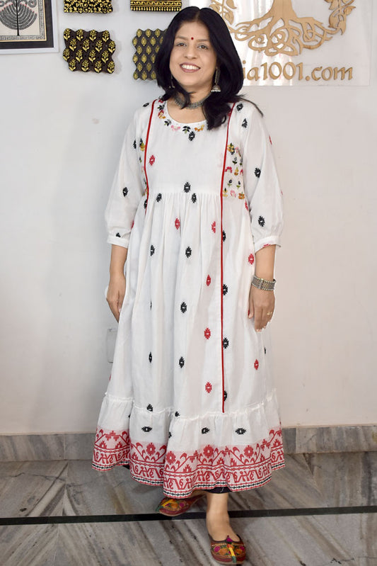 Elegant Cotton kurta / dress with French knot Hand Embroidery - Size 38 - 46