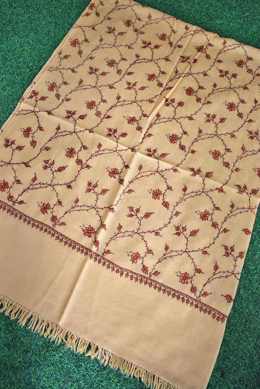 Intricate Jaal work Aari Embroidery Woolen Stole from Kashmir