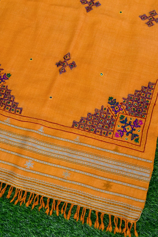 Handwoven Kutch Pure Merino Wool Stole with Mutva Hand Embroidery work
