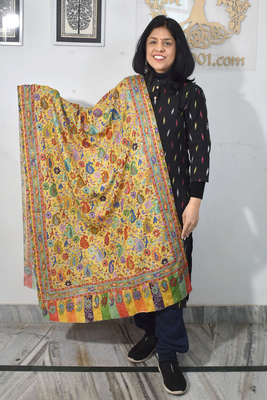 Beautiful Kalamkari Kashmiri shawl / stole with Aari Work
