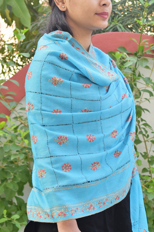 Intricate Jaal work Kashmiri Sozni Hand Embroidery Woolen Stole