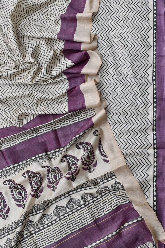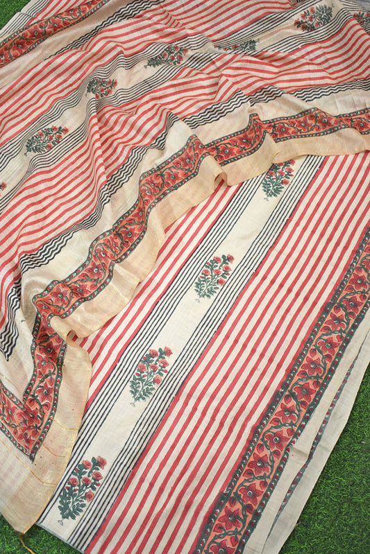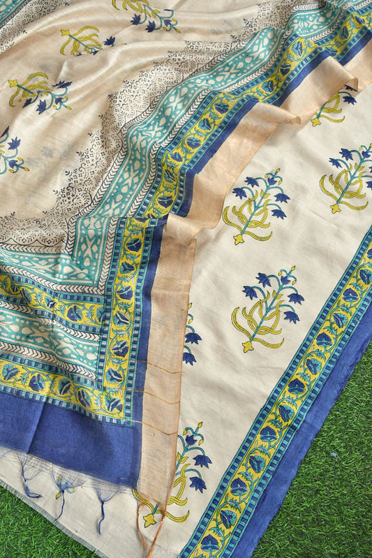 Elegant Hand Block printed Moonga Tussar Silk Kurta Dupatta Set