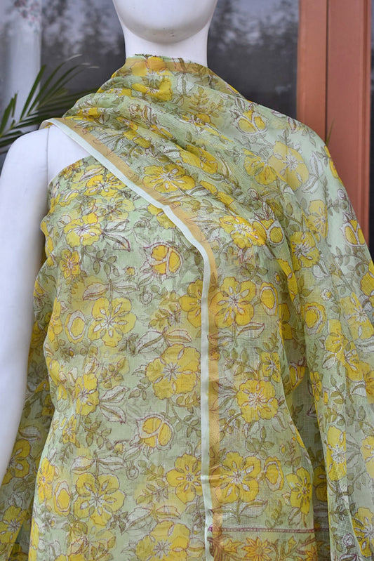 Elegant Hand Block Printed Kota Silk Unstitched Suit