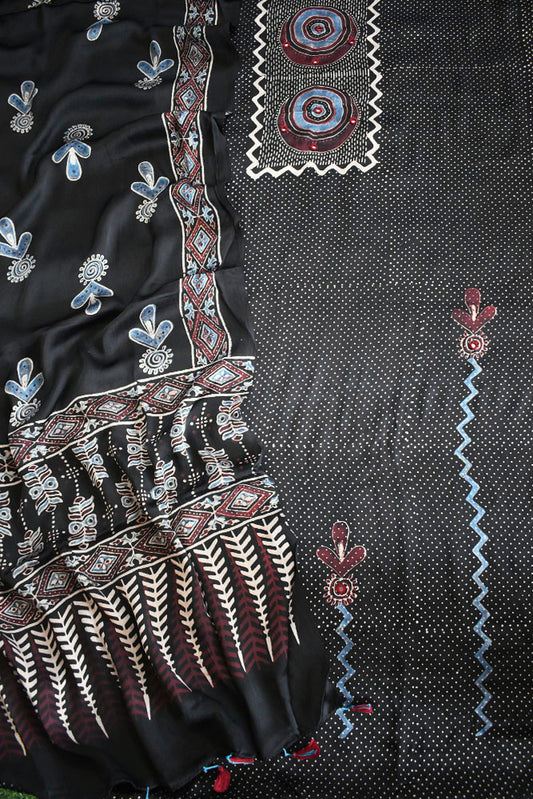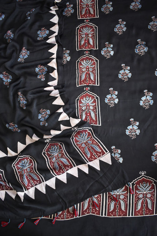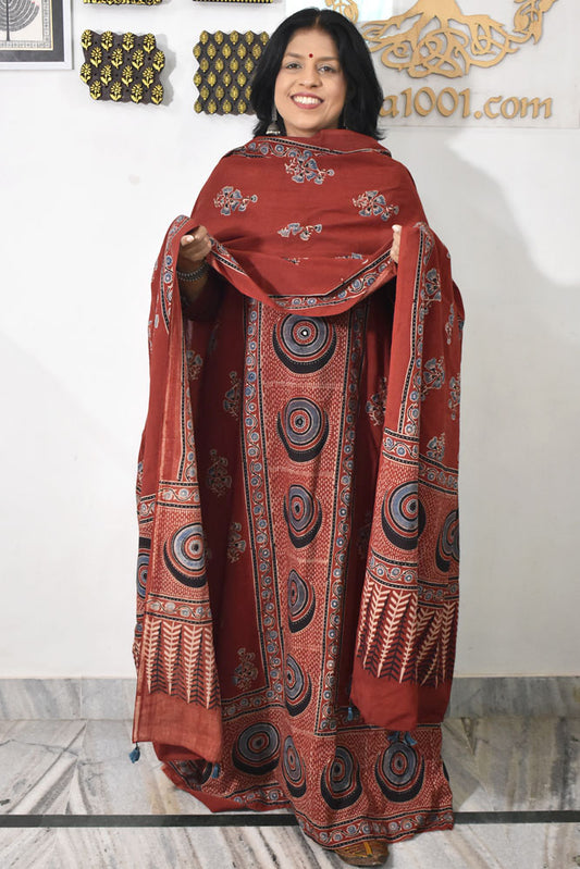 Designer Ajrakh Modal silk Kurta and Dupatta Set with Neck yoke and panel design