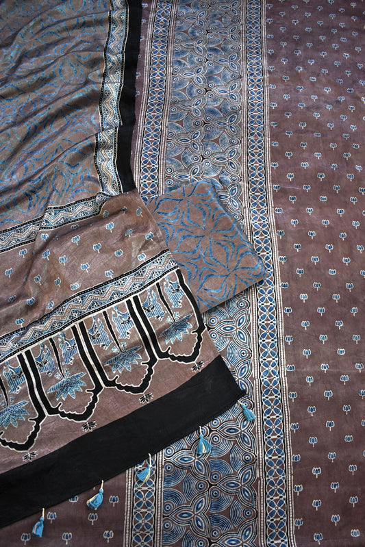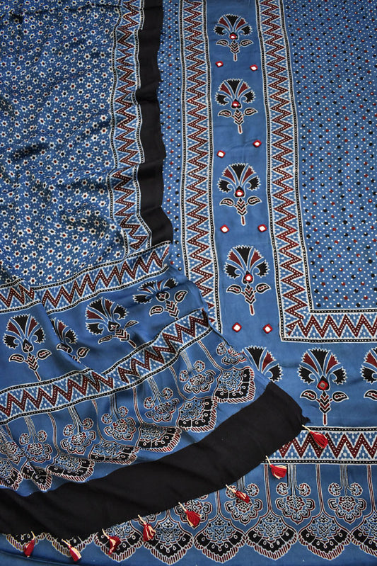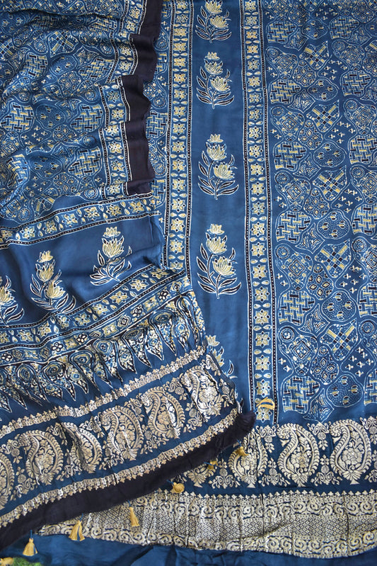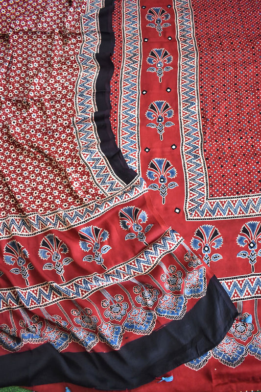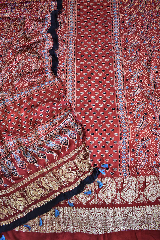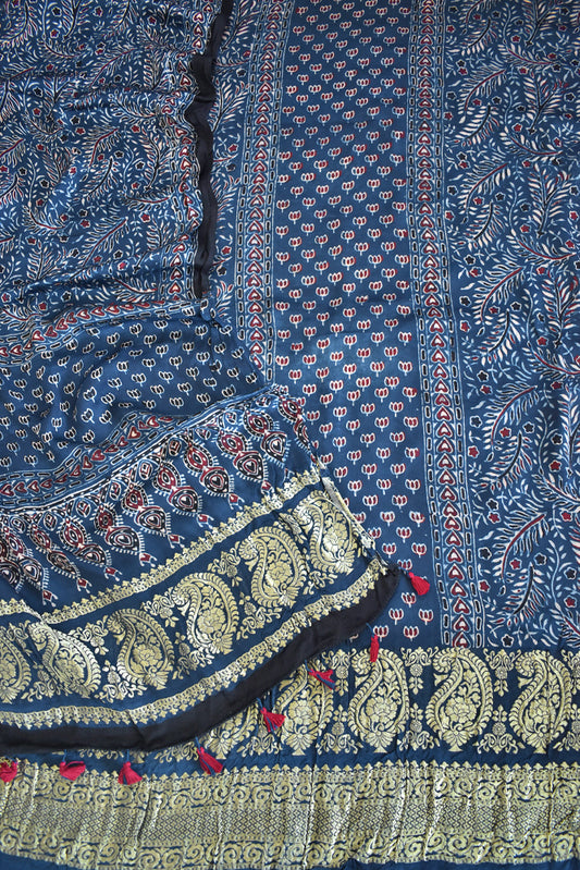 Designer Ajrakh Modal Silk kurta & dupatta set with Nakkshi palla