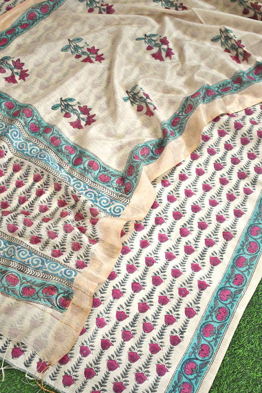 Elegant Hand Block print cotton suit & Chanderi dupatta