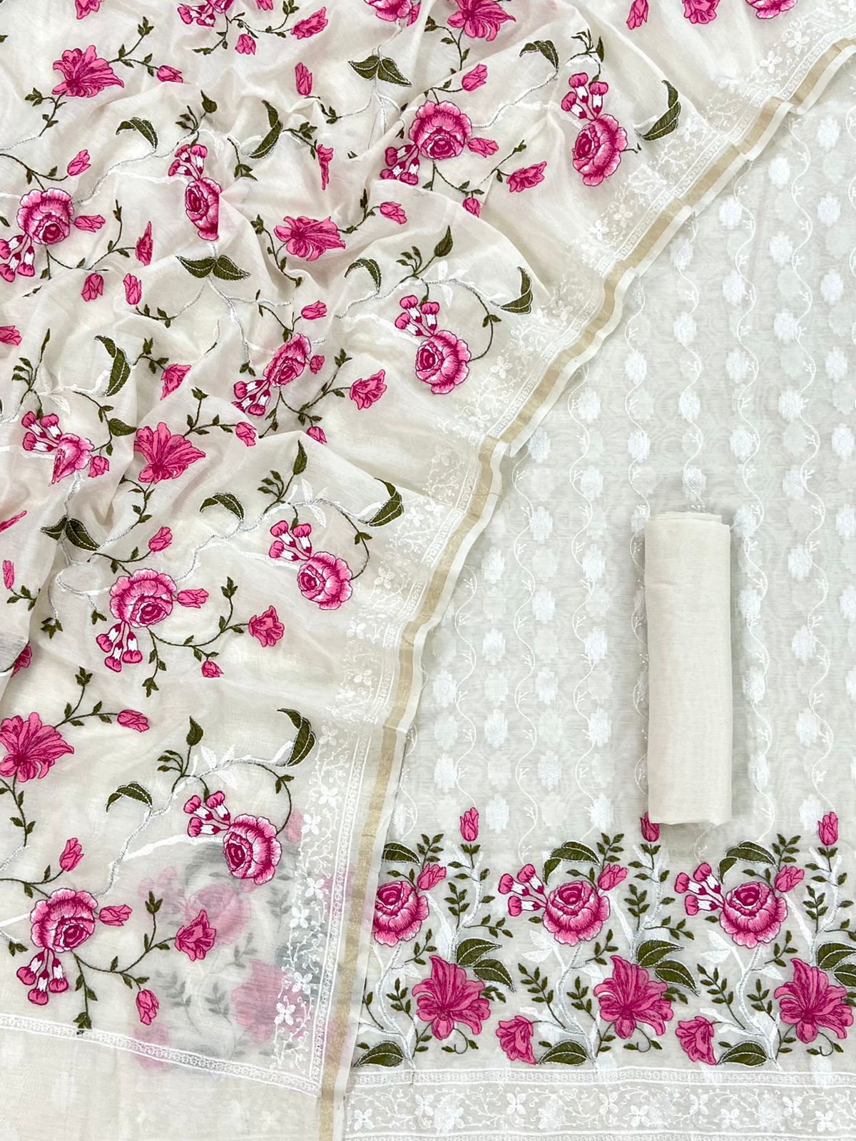 Beautiful embroidered Banarasi Slub Cotton Chanderi suit