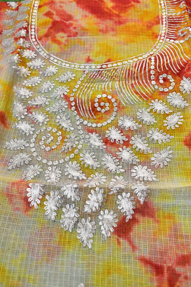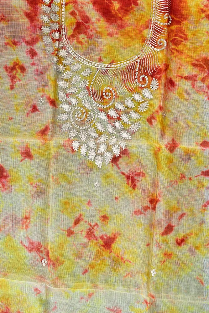 Beautiful Hand Tie & Dye Kota silk unstitched kurta fabric with Pitta work