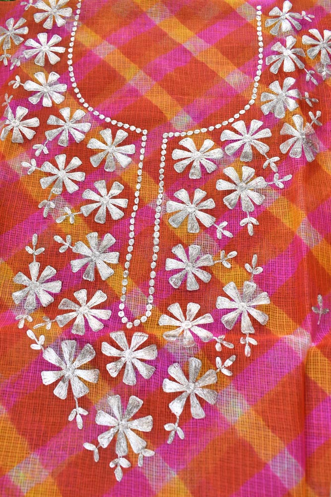 Beautiful Hand Tie & Dye Kota silk unstitched kurta fabric with Pitta work