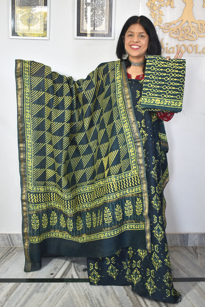 Beautiful Jahota Hand Block Printed Maheshwari Silk Cotton set with Bottom