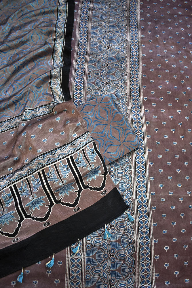 Designer Ajrakh Mashru Silk Unstitched suit with panel / yoke design- 3 piece set