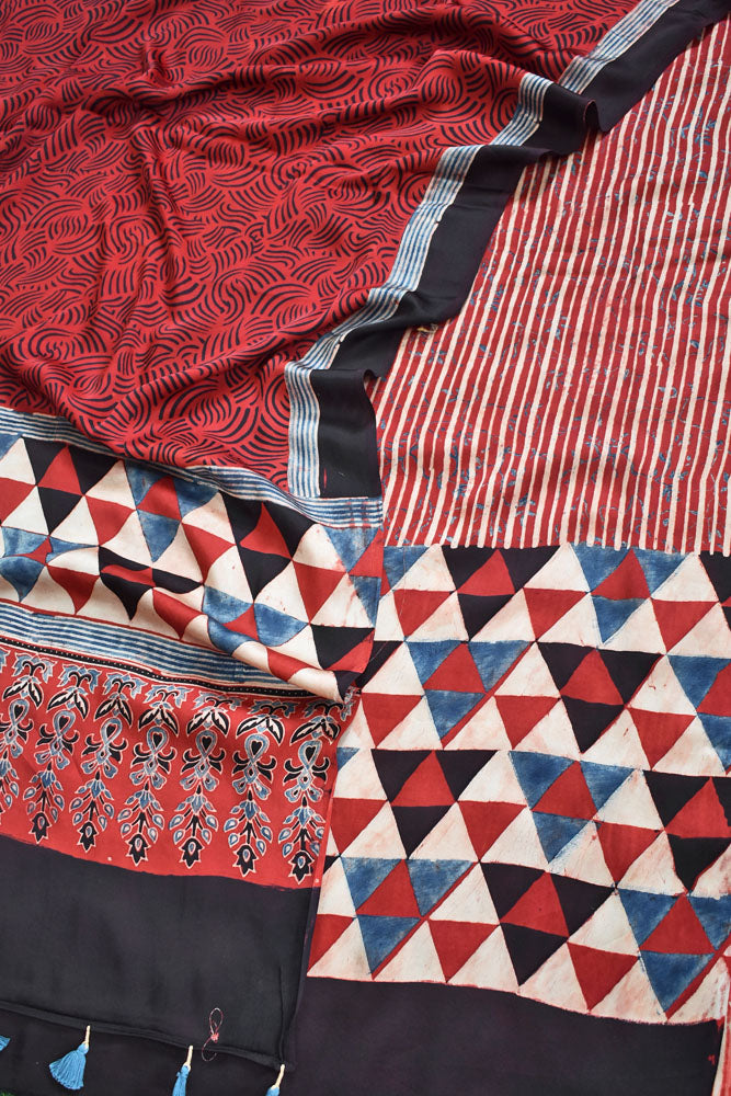 Elegant Ajrakh Modal Kurta and Dupatta Set with placement design & tassels