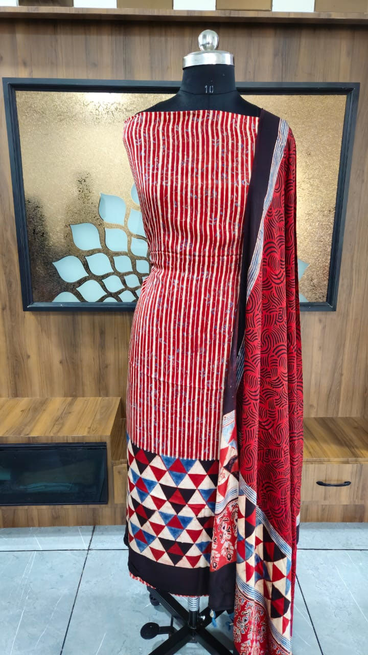 Designer Ajrakh Modal Kurta and Dupatta Set with Neck yoke and panel design