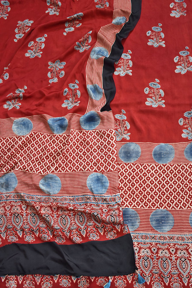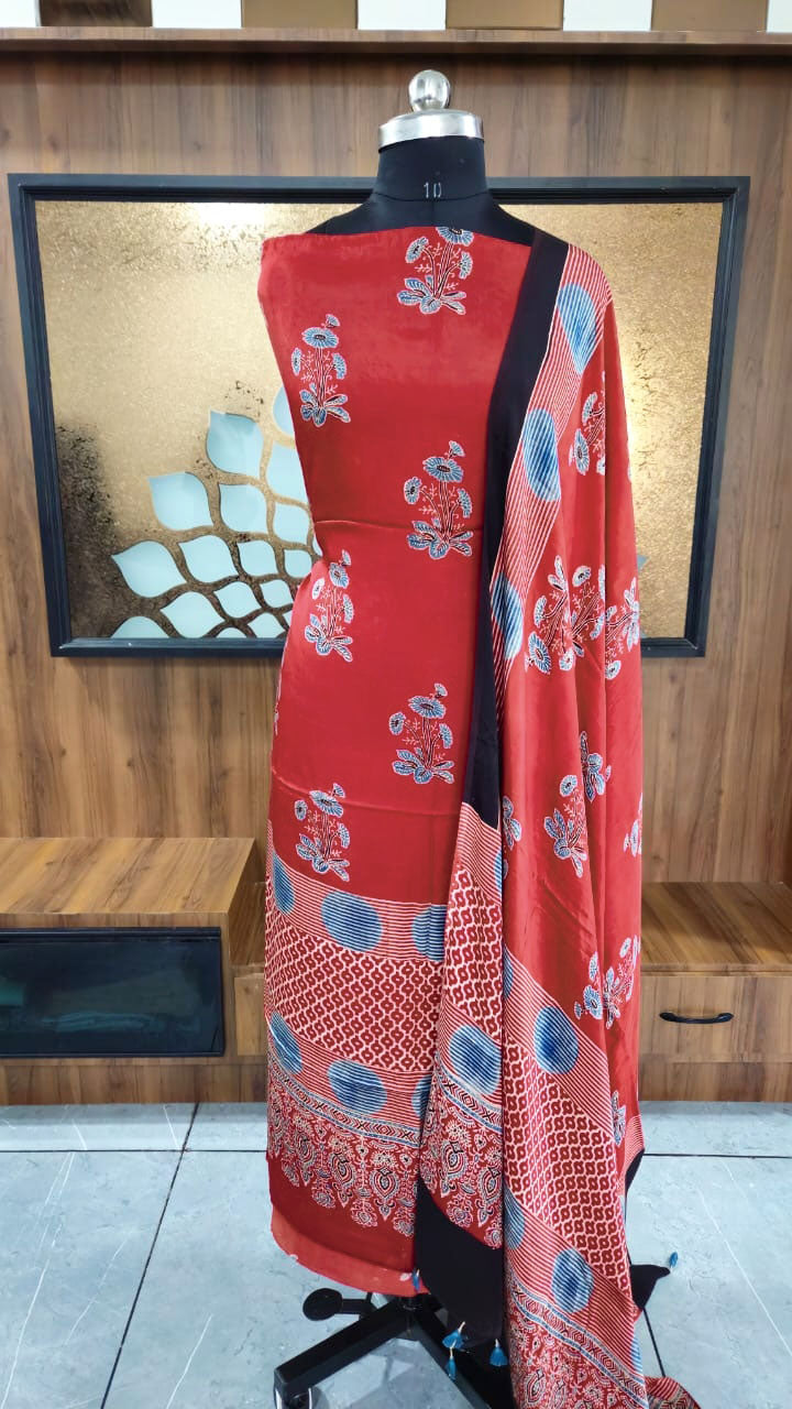 Elegant Ajrakh Modal Kurta and Dupatta Set with placement design & tassels