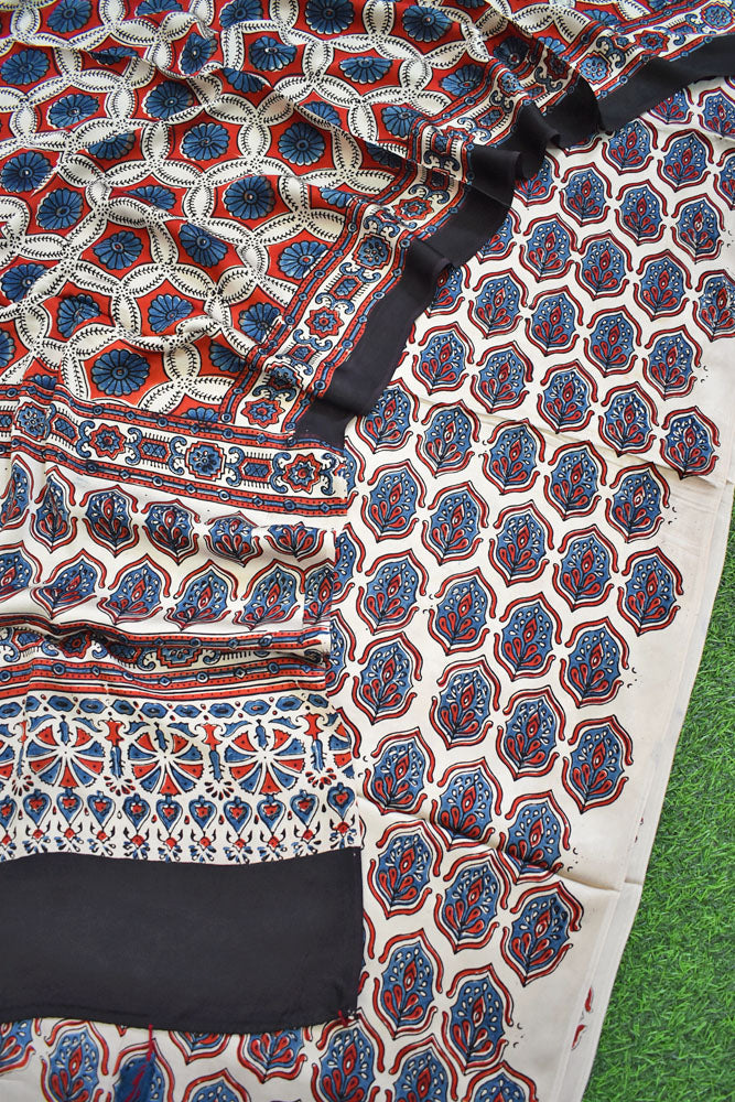 Designer Ajrakh Modal silk Kurta and Dupatta Set with Neck yoke and panel design
