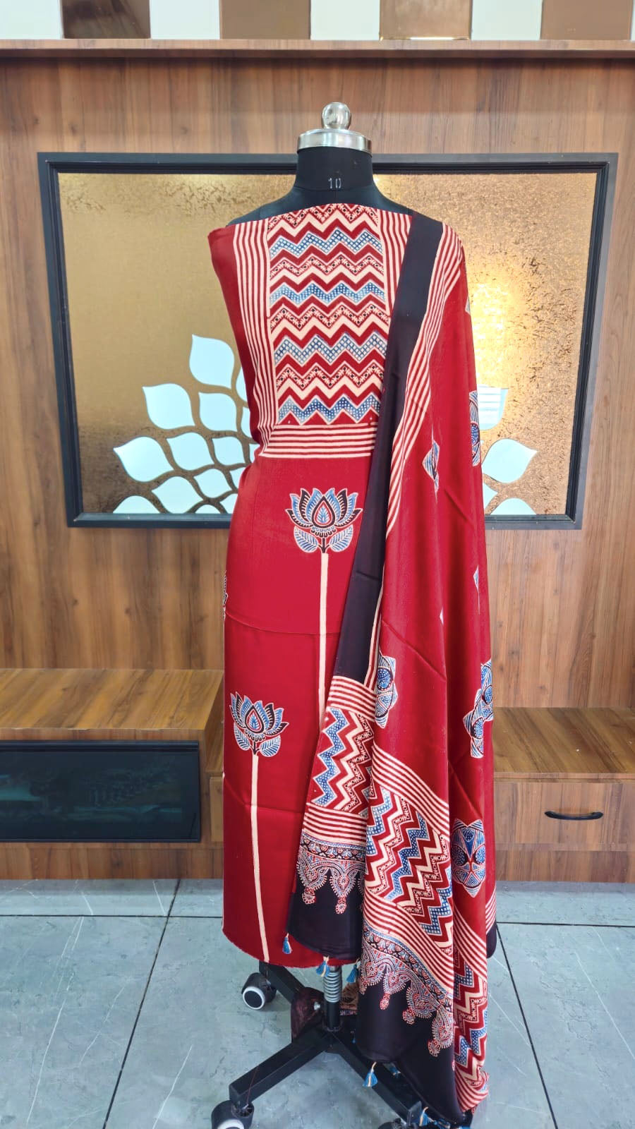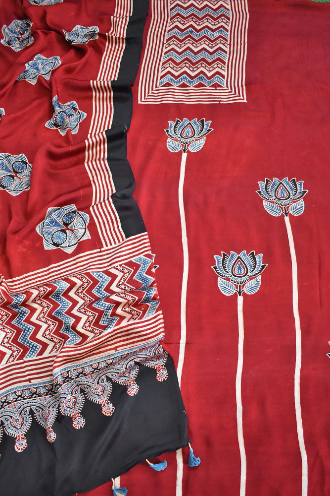 Elegant Ajrakh Modal Kurta and Dupatta Set with placement design & tassels