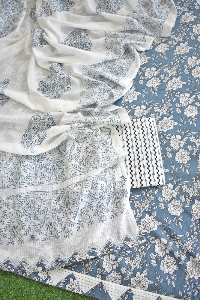 Cotton bottom and soft cotton dupatta with woven self pattern and hand block print