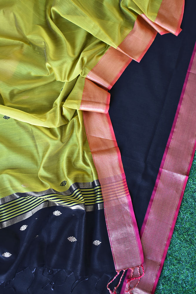 Elegant Handwoven Pure Maheshwari Silk cotton kurta fabric & dupatta set with woven borders and bootis