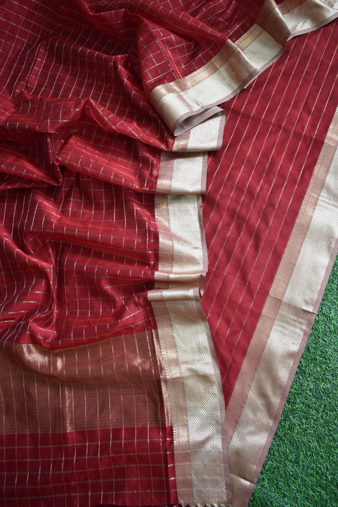 Elegant Handwoven Pure Maheshwari Silk cotton kurta fabric & dupatta set with woven borders and Zari stripes/ checks