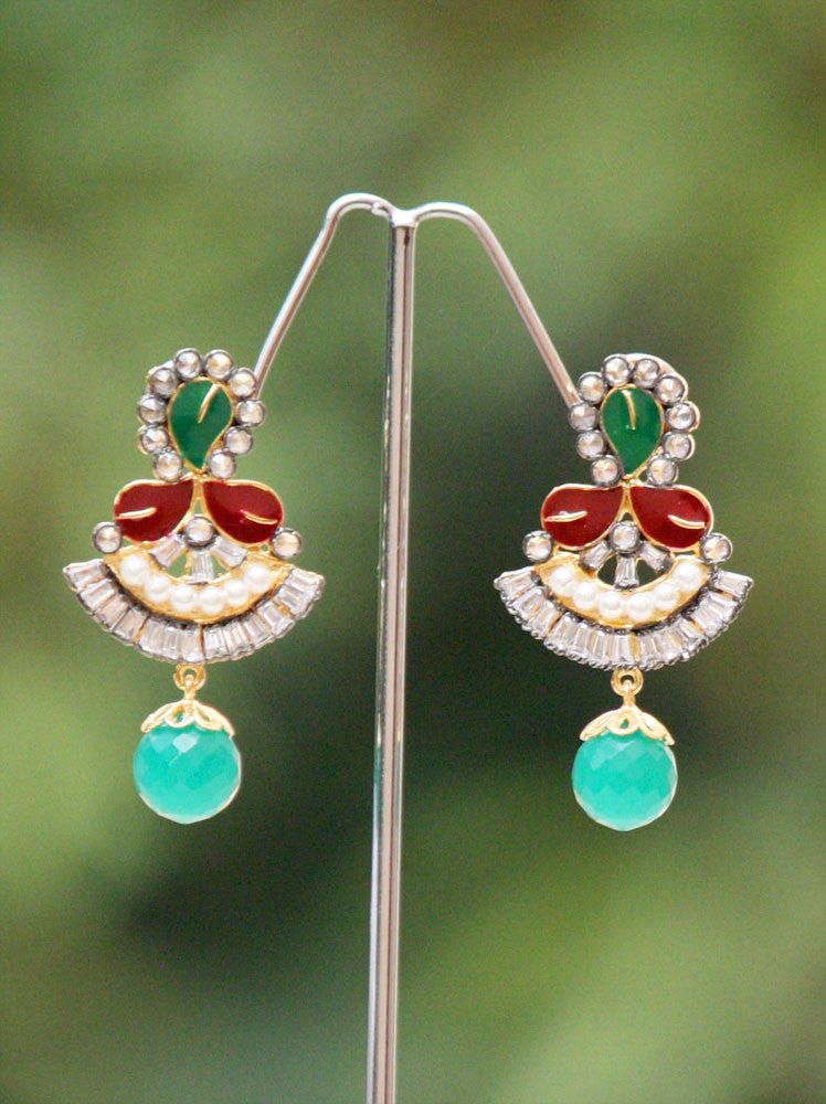 Very elegant and classy pair of earrings with pearls and stones with dull gold and antique silver finish ..